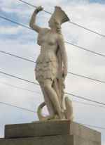 Unfortunately for us, New Hampshire is a densely populated state. A lot of our ride on Tuesday was along busy highways, We were relatively safe because the state has put wide shoulders along most of its roads, but it’s strictly business when you’re riding in highway traffic. I didn’t take many pictures. We rode through New London, Andover, and Tilton, which had a statue in the middle of the highway that was just too weirdly beautiful to ignore. Then we went on to Franklin, where we got off Route 11 and the traffic fell away.