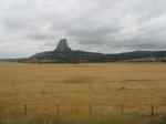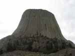 We got to Devil’s Tower at 8am, before it was inundated by busloads of tourists, and walked around the base for a half hour. You might know that the Tower is a world class site for “crack” climbers, who shimmy up cracks in rock faces with the help of ropes and steel chocks. The second thing you might not know is that the Indians don’t like this activity. We counted ten people in four parties on the rock face, and several more were on their way to the base when we got back to the car. Look closely at the center of the close-up photo of the rock face and you can see two of them. A Sioux medicine man is quoted in the visitor’s center as saying, “When people climb on this sacred butte and hammer metal objects into it, the tower is defiled . . . It is like they pounded something into our bodies.” A climber is quoted next to the medicine man, saying something like, “We touch the monolith and measure it by our sweat.” I think the Indians should win this one. They were here first. But the National Parks Service merely asks climbers to stay off the rock during the month of June, and most do.
