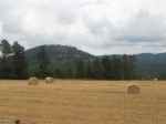 Circular rolls of golden fresh-baled hay were scattered through fields like game pieces. Behind them were stately mountains we didn’t have to climb. Along one stretch was a series of hacking platforms occupied by nesting pairs of ospreys. This was the longest ride of the trip so far, and for the last few miles the three of us were very tired, but tomorrow is a rest day. Round Lake was cold, the showers were hot, and Sara filled our bellies with bratwurst.