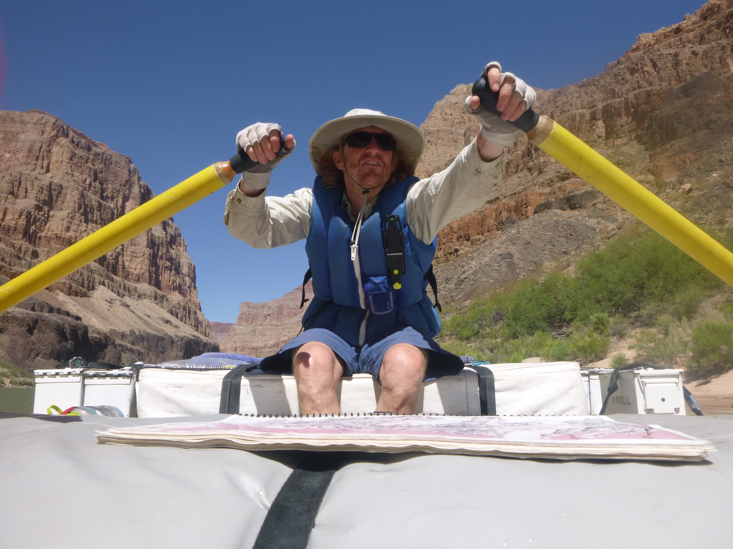 We pulled over on river right to see the Whitmore Canyon petroglyphs, which Rod said were relatively recent except for a few older, cruder figures scratched into the rock. It felt good to walk. Then Pedro gave me the oars for the last three miles. By 4pm we were in camp.