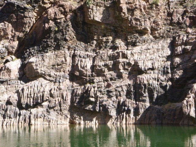 collared lizards. The raft was fully vertical against the rock now, but it was not stable. The current that carried us in started to breathe, the raft wobbled. As it wobbled out we gave it a kick, tipping it away, now bottom up into the current. Peter looked over, quite serious, and said, ‘Planwise, we’re pretty much through the alphabet.’”