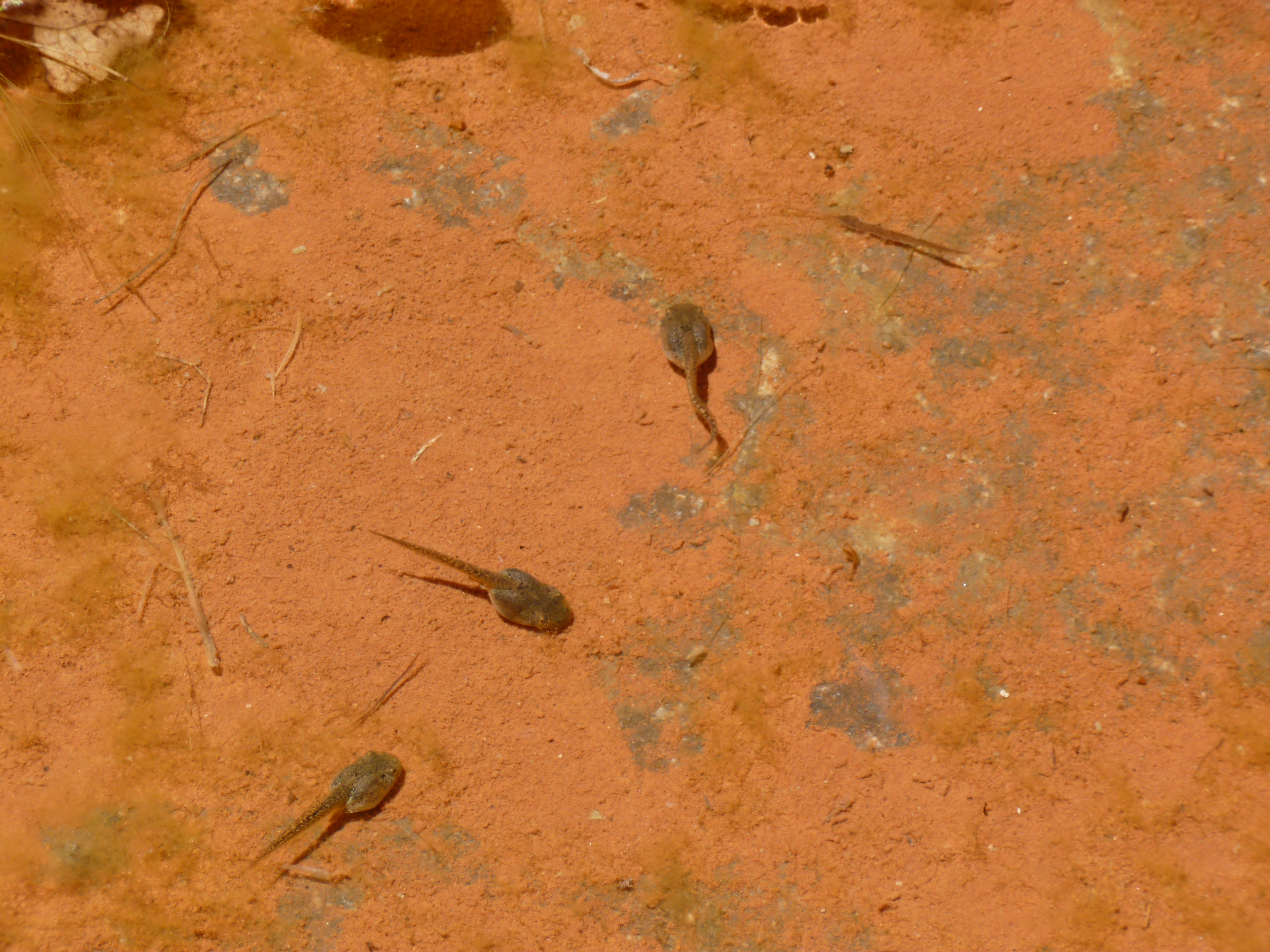 huddled together in the shade of a rock while he fried in the interests of science. After a while, I wandered away to look at the cute tadpoles in the shallow creek. Then we stumbled back to the boat and the 55-degree water.