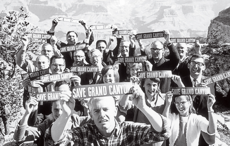 David Brower (center) and other Sierra Club members putting it out there around 1960.