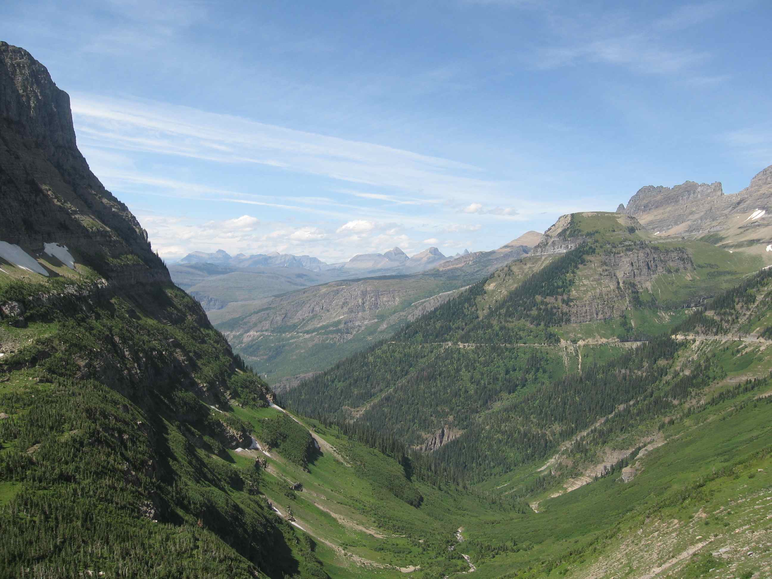Around noon we went for a drive, up to eat lunch at the historic Lake MacDonald Lodge and then up to the Continental Divide on the famous Going-To-The-Sun Road. Both of these have been photographed and described so often that I won’t attempt it here, except to say that the road is head-spinning crazy great, and don’t look down. Here’s a shot of Mount Oberlin, named for the college my daughter attends. Like many A-list national park environments, however, Glacier was jammed with people. We were in the ost crowded parts because we weren’t doing any hiking, but it was beautiful anyway.