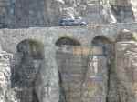 In the mid-1920s the Yellowstone Highway was incorporated into US Route 20, and the present route was blasted out of the opposite wall of the canyon. Tania’s graduate thesis is on early tourist accommodations along US Route 20. I decided she had to see this, so I turned around and met her coming up the canyon in her car. Together we drove up a dirt road on the west side of the canyon.